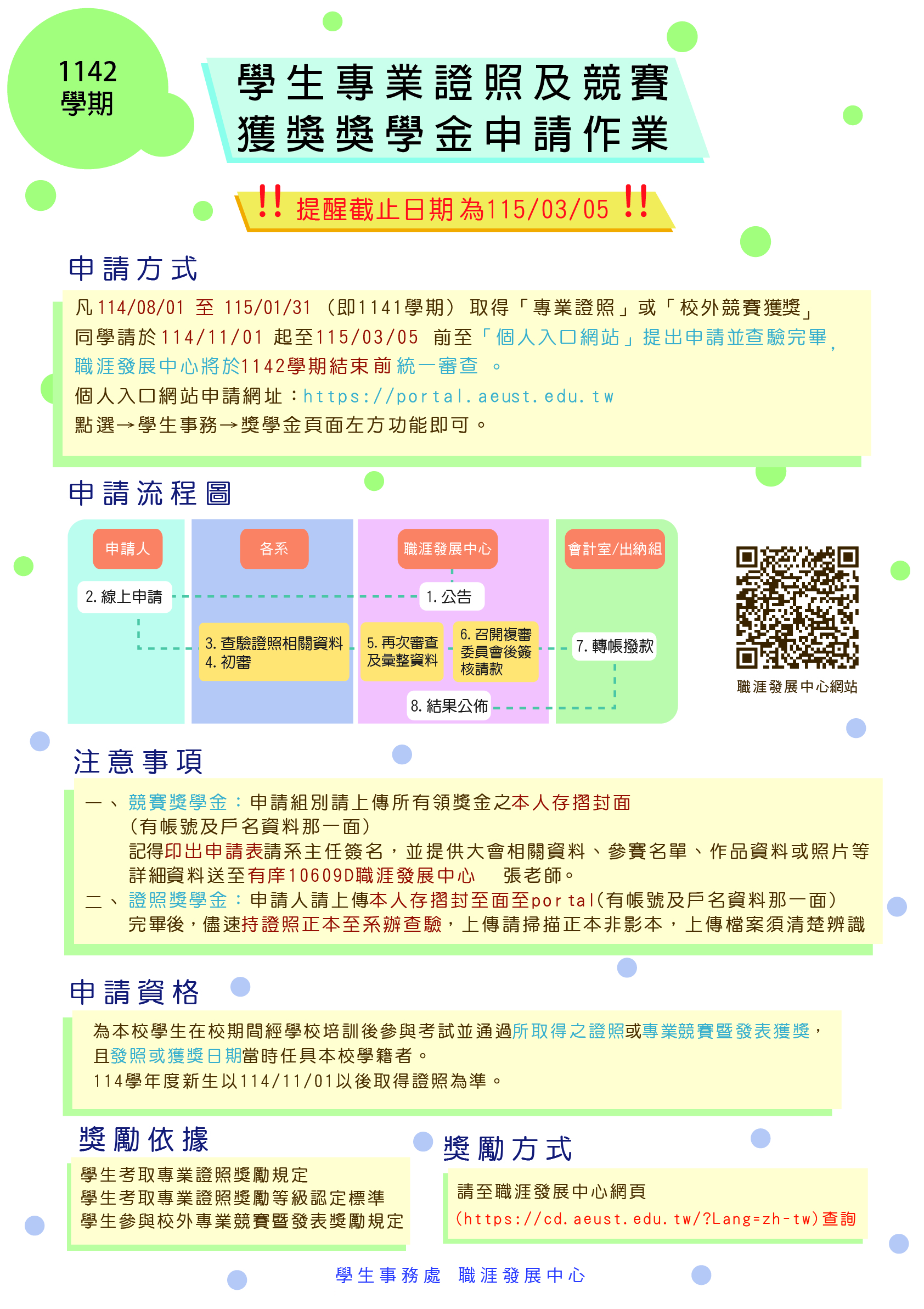 1142學期學生「取得專業證照」與「校外專業競賽獲獎」之獎勵申請